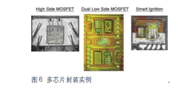 图6所示为目前车载系统中采用多芯片封装的几个实例。这些智能化器件可以提供更高的系统性能监控能力,通过集成?;すδ芴岣吖β氏低车目煽啃?。如过流、过压和过热?;さ裙δ芏际钦饫嗖返谋昱?。当器件感测到有可能发生上述异常状况时,能够把功率MOSFET置于自我保护整个系统的环境中。此外,这些器件还集成有附加诊断功能,用以监控负载开路或短路,有助于指导汽车机械装置隔离和纠正车辆中出现的问题。
