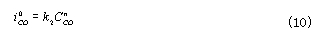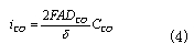 式中,iCO为CO氧化反应的电流密度 CCO为CO的体积浓度;DCO为CO的扩散系数