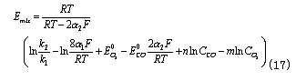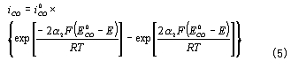 为CO的交换电流密度;a为CO氧化反应的电荷传递系数。——— 在平衡条件下,上述两反应的电流密度相等,所以有