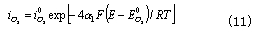 因氧气分压较大,一般由电荷传输过程控制,根据Butler-Volmer方程得到反应速率为: