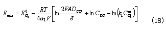 联立等式(6)、(9)、(10) 、(12)和(15)得平衡混合电势为: