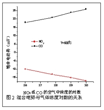 近年来,混合电势传感器的各种电极材料和电解质的开发研究十分活跃,多种器件原型已被制备出来,但是能实际应用的商业产品仍未出现,因为大多数器件没有足够的长期稳定性。想进一步改进这些传感器的办法是用具有更好的热、化学稳定性的金属氧化物取代贵金属电极,这不仅能使传感器的工作温度更高,而且能够扩大测量目标气体的种类。