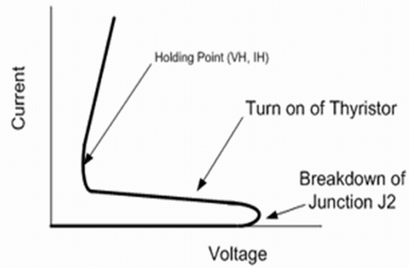 图2 晶闸管正向导通的电流-电压(I-V)曲线
