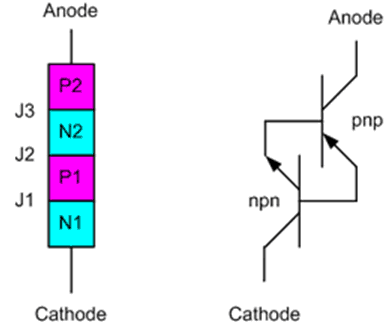 图1 晶闸管物理结构和电路