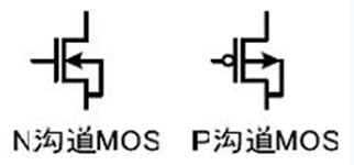 MOSFET管是FET的一种(另一种是JFET),可以被制造成增强型或耗尽型,P沟道或N沟道共4种类型,但实际应用的只有增强型的N沟道MOS管和增强型的P沟道MOS管,所以通常提到NMOS,或者PMOS指的就是这两种。右图是这两种MOS管的符号。