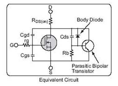 MOS管的三个管脚之间有寄生电容存在,如右图所示。这不是我们需要的,而是由于制造工艺限制产生的。寄生电容的存在使得在设计或选择驱动电路的时候要麻烦一些,但没有办法避免,在MOS管的驱动电路设计时再详细介绍。