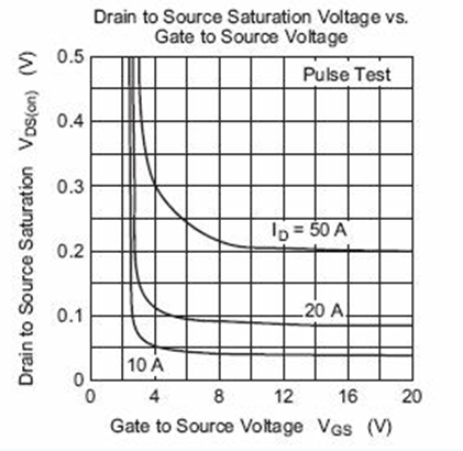下图是瑞萨2SK3418的Vgs电压和Vds电压的关系图??梢钥闯鲂〉缌魇?,Vgs达到4V,DS间压降已经很小,可以认为导通。