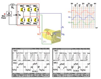 如果需要更高的效率和性能,就必须通过脉宽调制(PWM)方法来产生正弦波。为了更进一步的改进效率,还可以使用空间向量调制方法。