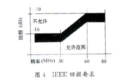 双绞线中的每对导线以双螺旋形结构相互缠绕。如图2所示,共模电流Icom在两根导线上以相同方向流动,并经过寄生电容Cp到地返回。在这种情况下,电流产生大小相等极性相同的磁场 ,它们的输出不能相互抵消,引起射频干扰,严重时有可能会造成电路板瘫痪。因此,设计者必须采取措施予以防范:除了保证布线合理外,选择有效的滤波元件也是重要的一方面。磁模块的共模扼流器部分可以有效地减少共模信号引起的射频干扰。如图3所示:共模电流以相同的方向流过共模扼流圈绕组的每一边,建立大小相等相位相同的相加磁场使共模扼流圈对共模信号呈现高阻抗,通过共模扼流圈的共模电流大大地减弱。磁??橹饕牟问校郝┑绺?、线间电容和回损。一般地,漏电感和线间电容越小性能越好,而回损应当符合ANSIX3.263 TP-PMD规定,如图4所示。