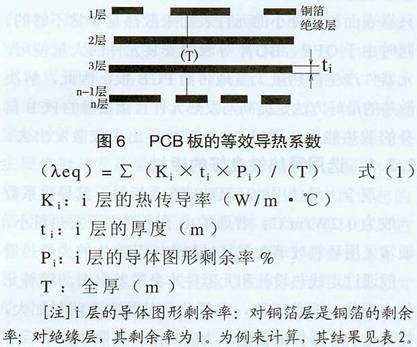 评价PCB的散热能力,就需要对由导热系数不同的各种材料构成的复合材料一一PCB用绝缘基板的等效导热系数(九eq)进行计算。PCB板的等效导热系数见图6所示。