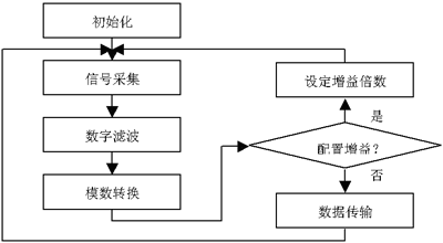测量时使用内部参考电压,测量信号的电压输入范围为0~500mV,当输入信号满量程输入,模数转换输出的最高位不为1时,可进行信号放大,最大放大倍数可达32。当输入信号的放大倍数为N时,输入信号的范围会相应地缩小为原来的1/N。例如,当选择PGA的放大倍数为2倍时,测量信号的电压输入范围为0~250mV。