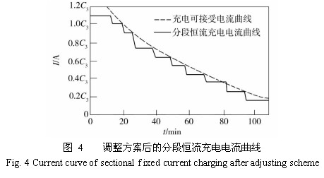 在调整方案后的分段恒流充电试验过程中 ,电池没有出现温度过高而停止充电的情况 ,充电时间缩短了,充电效率也提高了,并且整个充电过程均按设定的程序自动进行,完全不需要人工干预,实现了智能化的快速充电。