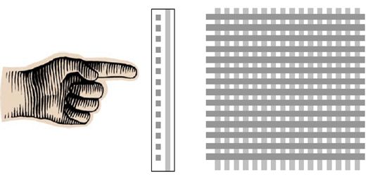 图1:(b) ITO触摸屏或者PCB触摸板的侧视图(左)以及正视图(右)