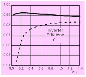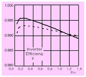 图6 flowsol-bi逆变电路效率仿真结果-ee=99.2%标准igbt全桥-ee=97.2% (虚线)