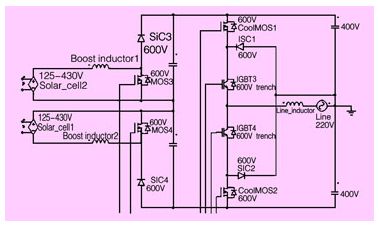 ●双boost电路都是由mosfet(600v/45 mω)和sic二极管组成;