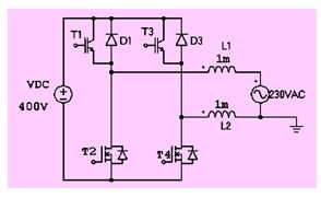 由于上桥臂的igbt工作在50hz的开关频率下,实际上并不需要对该支路进行滤波。因此对电路拓扑进行优化,可以得到图14所示的发射极开路型拓扑。这种拓扑的优点是只有有高频电流经过的支路才有滤波电感,从而减小了输出滤波电路的损耗。