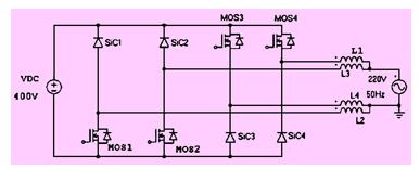 图19 可实现无功功率输出的npc拓扑逆变器(增加了2个sic二极管和4个si二极管)