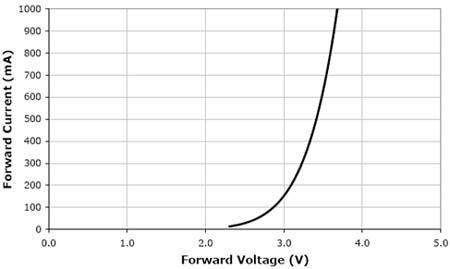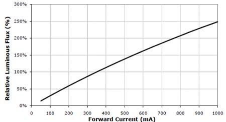 图1. XLampXP-G的输出相对光强和正向电流的关系