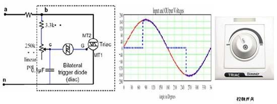 改变可变电阻的分压比就可以改变其导通角,从而实现改变其有效值的目的。通常这个电位器带一个开关,接在n的输入端,用于开关灯。除了可控硅以外,还有晶体管后沿调光技术等等,因为它们的基本问题是相同的,就不在此介绍了。