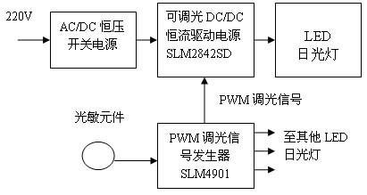为了减小在强日光下不必要的照明,可以采用光敏自动调光LED日光灯(或任何其他LED灯具)。它的方框图如图11所示。