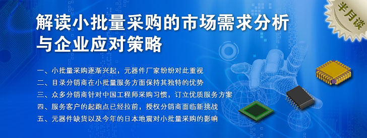 元器件缺货以及今年的日本地震会给某一些,特别是日本的原厂的生产带来直接的影响,或许会造成更多的元器件缺货的问题,所以有时候,目录分销商的一些数量不多的库存可能会被客户很快的一次性拿走,就不能再服务其他客户。这是小批量采购受到的影响因素之一。