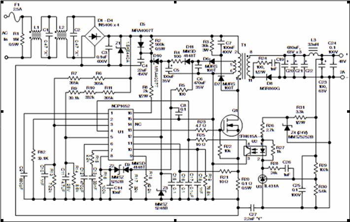 图1 基于NCP1652A的单段转换器的完整原理图[page]