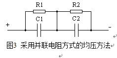 最简单的电压均衡措施是在每个超级电容器两端并接电阻,如图3。