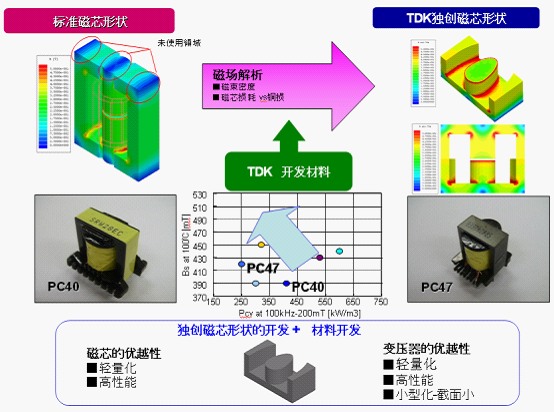 图7:采用PC47材料的TDK独有的磁芯的形状