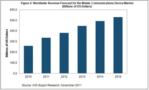 据IHS iSuppli公司的无线通信市场研究报告,智能手机和平板电脑在消费者中日益普及,今年将推动移动通信产品与无线基础设施设备营业收入大增29%。