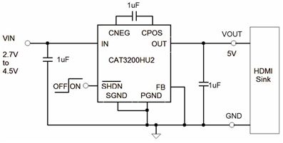 图3:适合HDMI端口供电的CAT3200HU2低噪声电源IC。