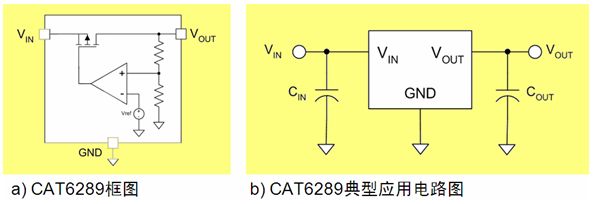 图4:CAT6289超低工作电流NanoPower LDO框图及典型应用电路图。