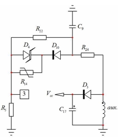 在众多设计中,必须保护适配器免受热失控(如适配器壳体内温度超过特定值)影响。我们可以通过跟齐纳二极管(D10)串联一个负温度系数(NTC)电阻(R14)来应用简单的 OTP(如图 3 所示)。当温度升高时,NTC电阻开始下降,并升高引脚 3 的电压。当引脚 3 的电压电平达到 3 V 时,器件就简单地闩锁,并要求复位,然后重启。