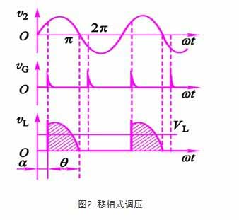 晶闸管移相式软起动器是改变正弦交流电压的波形,使之变为非正弦脉冲式交流电,通过调节其占空比,如图2所示。