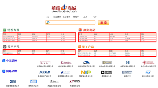 华明科技(国际)有限公司是一家从事现货库存的IC分销商。近日,在本届中国(深圳)电子展上,华明科技全面推出全新打造的电子元器件网购平台——华电商城(http://www.e-ic.cn)。通过华电商城的线上交易,不设最低采购量,价格透明,华明科技的IC分销有了很好的补充。