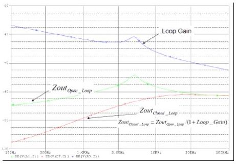 图1 闭环输出阻抗峰值Zout出现在控制环路交叉频率处