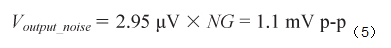 跨导放大器的输入噪声应乘以此增益。ADA4505-2的0.1 Hz至10 Hz输入电压噪声为2.95 μV p-p,因此输出端的噪声为: