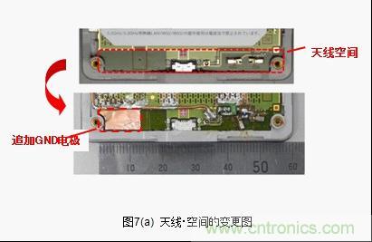 接下来将针对天线小型化的有效性进行检测。一般来说天线具有改善接地距离的特性。但是,天线占据空间(排除了GND领域)很大的话天线以外的 元器件安装空间就会受压迫。天线小型化和缩小天线空间迫在眉睫。当天线空间的一部分被GND占据,对这时候的天线特性的变化进行评价。天线空间的宽度为52mm,其中13mm被GND占据,low band的特性劣化,变成了跟LC电路等同的Total Efficiency(图7(b))。这就意味着实际上天线空间的面积可减少25%。