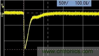 我们通常称之为电源的负载瞬态恢复时间,或者瞬态响应时间。它表征的是,当负载电流发生突然变化的时候,电源电压恢复到设定范围内所需要的时间。如图2所示: