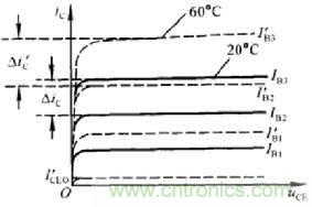 温度对输出特性的影响:如图3实线,虚线分别所示为20℃和60℃时的特性曲线,可见,温度升高时,由于输入特性左移,导致集电极电流增大。