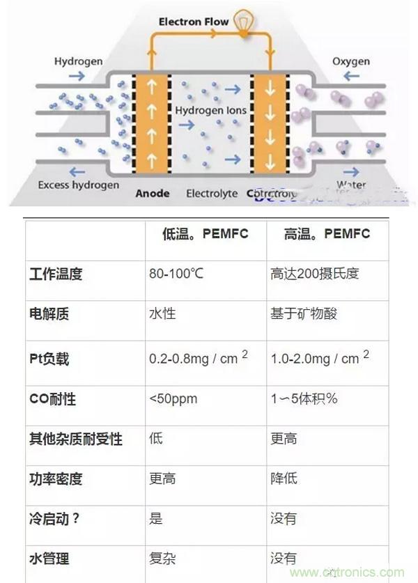 HTPEMFCs不优于低温PEMFC;两种技术都在其优势所在的地方找到了利基。下表总结了两种PEMFC变量之间的差异:
