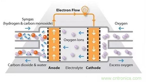 SOFC使用固体陶瓷电解质,例如用氧化钇稳定的氧化锆,而不是液体或膜。它们的高工作温度意味着燃料可以在燃料电池本身内重整,消除了对外部重整的需要,并允许单元与各种烃燃料一起使用。与其它类型的燃料电池相比,它们还相对耐燃料中的少量硫,因此可以与煤气一起使用。