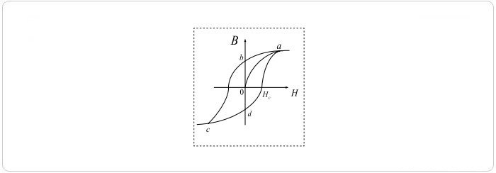 一般磁性材料都有S形状曲线的特性,称之为磁滞回路(hysteresis loop),如图2所示。此磁滞回路曲线建立在B—H的坐标轴上,为磁性材料遭受完全磁化与非磁化周期,图示为典型磁滞曲线的铁心,如果曲线由a点开始,此点表示最大正磁化力,至b点磁化力为零,然后下降至c点为最大负磁化力,再至d点磁化力为零,最后返回最大正磁化力的a点,此即为整个磁性周期。高导磁率、低矫顽力磁芯的磁滞回线如图3所示。