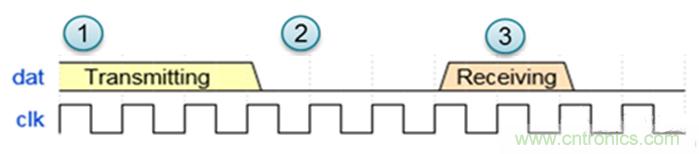 在图2和图3中的点1,无人机的超声波传感器发出声波,在返回信号处理路径上表示为饱和数据。发送后,信号处理路径变为静音(点2),直到回波从物体反射回来(点3)为止。