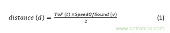 距离(d)是从无人机上的超声波传感器到地面/物体的距离,ToF(t)是前面定义的ToF,而SpeedOfSound(v)是通过介质的声速。ToF(t)×SpeedOfSound(v)除以2,因为ToF计算超声回波往返物体的时间。