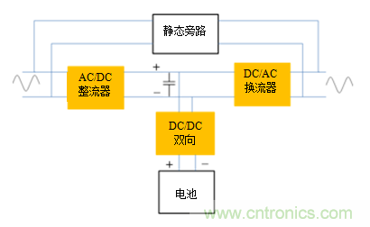 图2:具有双向DC-DC换流器的在线式UPS框图