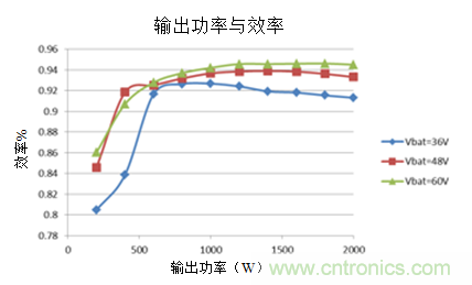 参考设计在降压模式(作为充电器)下的峰值效率为94%,在升压模式(放电期间)为95%,平均效率高于93%。这种高放电效率为电池提供更长的运行时间。在36V至60V的宽输入电压范围内,使用电流馈电全桥级在放电模式下实现高效率,其优化隔离变压器的设计,以绕组中的最小化均方根(RMS)电流,同时最小化通过输入电容器的纹波电流。