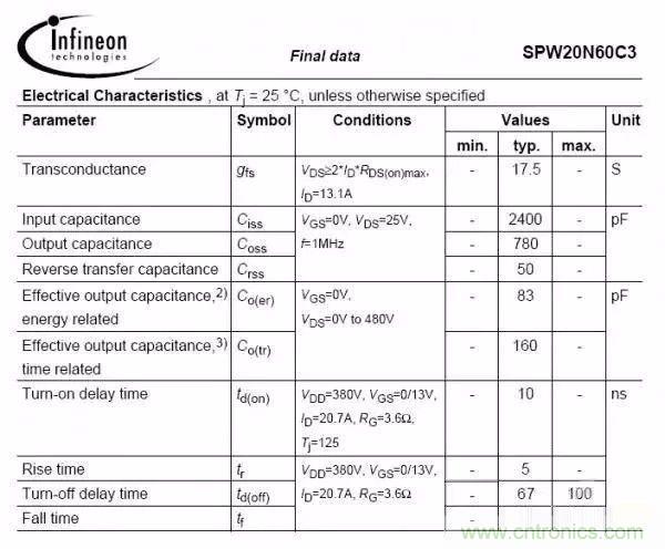 参照以上两图,是不同型号的MOS管,对比下输入结电容和输出结电容,2400PF与800PF;780PF与2200PF;一看就知道第一个规格是快管,第二个是慢管,这时候决定开关速度还要与驱动电阻匹配;常规情况驱动电阻在10R-150R比较多,选取驱动电阻与结电容有关,针对快板驱动电阻可适当增大,慢管驱动电阻可适当减小; 对于二极管,有肖特基二极管,快回复二极管,普通二极管,还有一种用的比较少的SIC二极管,开关速度SIC二极管几乎为零,等于是没有反向恢复,开关辐射最小,并且损耗也最小,唯一的缺点就是价格昂贵,故很少用;其次就是肖特基二极管,正向压降低,反向恢复时间短,依次是快回复和普通二极管;需要在损耗和EMC之间折中;一般可采取改吸收以及套磁珠等措施整改EMC;