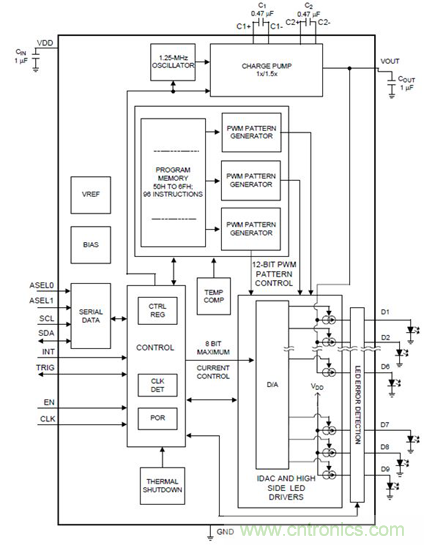 LP55231:九通道LED驱动器,旨在为移动设备提供照明效果设备。