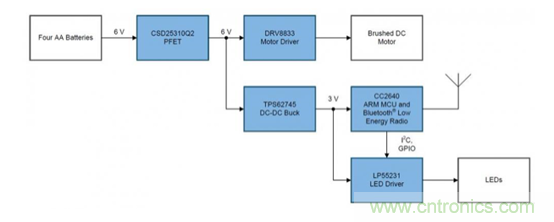 电源技术:大联大世平代理的TI产品的智能门锁解决方案有三种主要的功率拓扑:低压差(LDO)稳压器,降压转换器(也称为降压)和升压(见下图)。LDO和降压降低电压产生的低电压电源轨来运行MCU,更高的电压组件运行在更高的电池上电压。增强是事件相关的,因为每个锁定和解锁事件都必须提高电压从3V到5V,用于电机和LED的操作。选择降压配置是因为LDO具有接地漏电流,而降压具有零接地漏电流,因此效率更高。选择TPS62745降压转换器是因为它为低功耗提供了额外的好处设计。该TPS设备具有允许用户选择输出电压的选择线,因此无需反馈电阻。由于没有,物料清单的成本可以稍微降低反馈电阻。TPS62745可以动态地启用或禁用电池电压检查使用一个使能引脚和外部电阻分压器。由于电压,能量是守恒的分频器只有在需要电池电压检查时才能使用。其余的时间分配器电路不使用能量,没有连接。TPS62745在极轻的负载下也是有效的,它是在10μA时效率达到85%。
