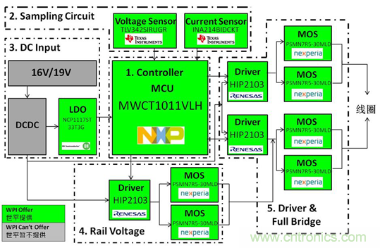图示1-大联大世平推出基于NXP MWCT1011VLH的15W单线圈定频无线充电解决方案系统架构图